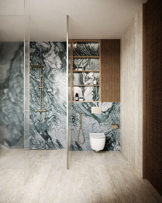 Upon entry, the villa reveals an open and welcoming atmosphere, enhanced by warm lighting and layered textures that promote relaxation and everyday comfort. The spatial layout encourages seamless movement between rooms while maintaining intimate zones, allowing the home to support both family living and social gatherings with ease. Material selection focuses on light, tactile finishes that reinforce authenticity and longevity, ensuring the interiors remain both practical and visually refined. To complement this serene palette, carefully curated pops of color and strong patterns are introduced in key moments, adding personality and visual interest while maintaining overall harmony.
