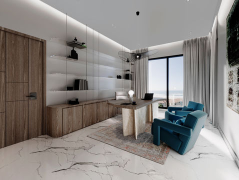 In this villa, C’est ici showcases bold sophistication, masterfully balancing abundant natural light with striking dark elements. The interplay of dramatic marbles and rich dark walnut wood infuses the space with depth and contrast, achieving a seamless fusion of opulence and contemporary elegance. Expansive windows and open-plan layouts amplify the villa’s grandeur, while every design choice harmonizes aesthetics with functionality, creating a timeless sanctuary of refined luxury.