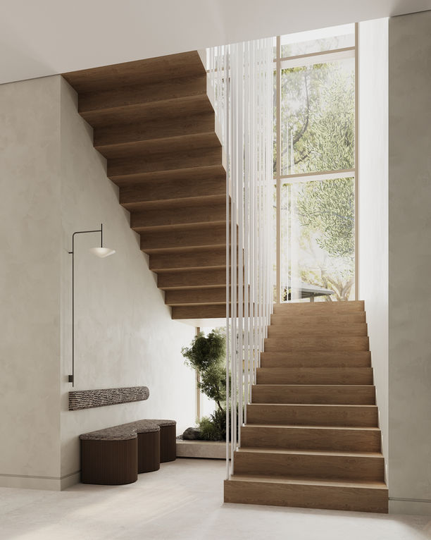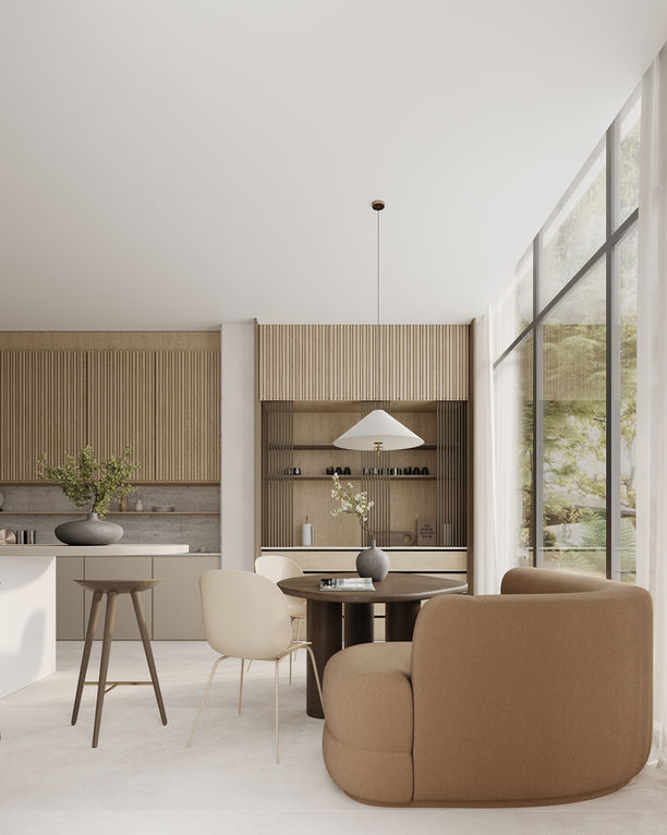 The palette is rooted in neutral tones, enhanced by organic materials like reclaimed wood, textiles and stone, fostering a sense of warmth and sophistication to add depth and interest. Our design embodies a serene retreat with the cozy charm of a family home.
